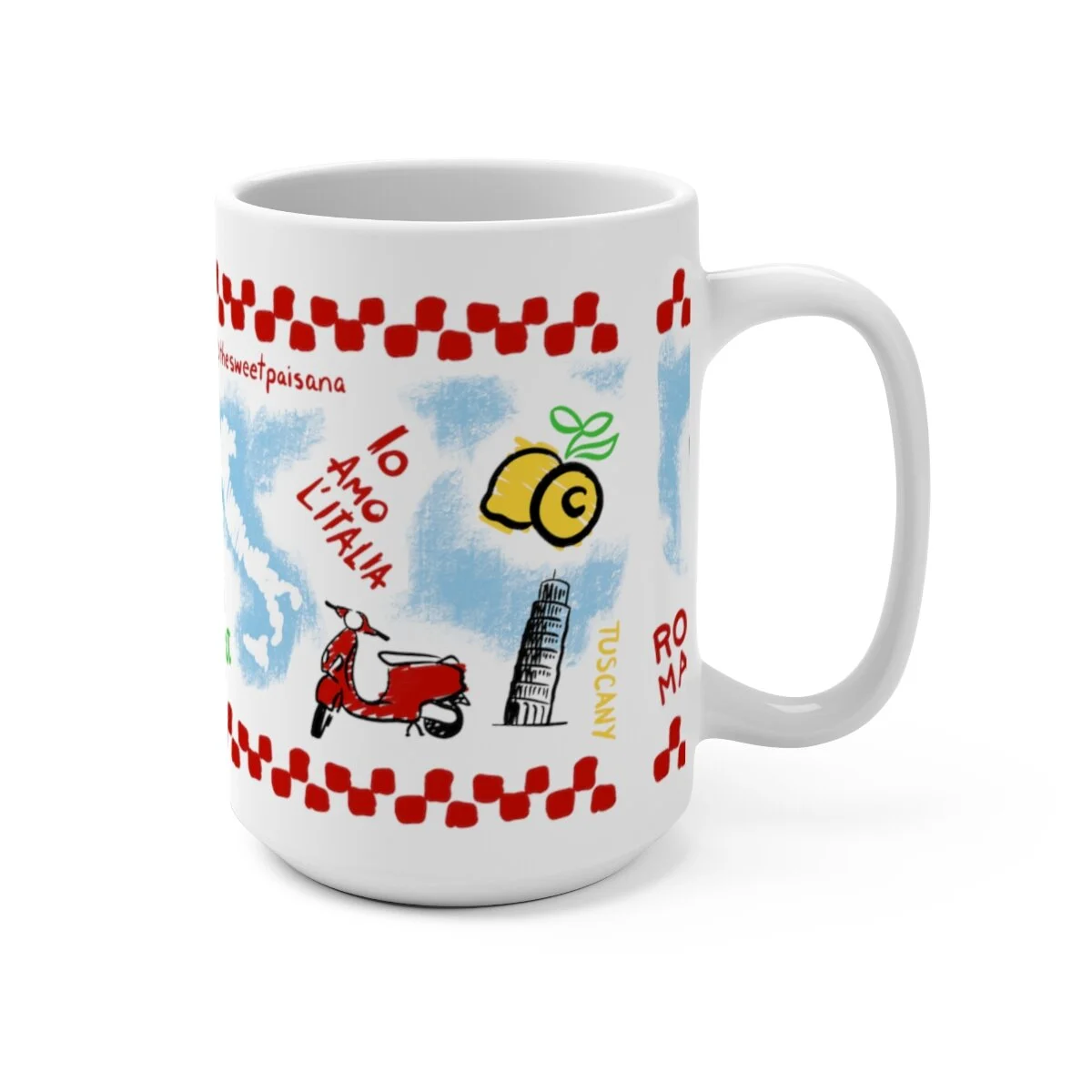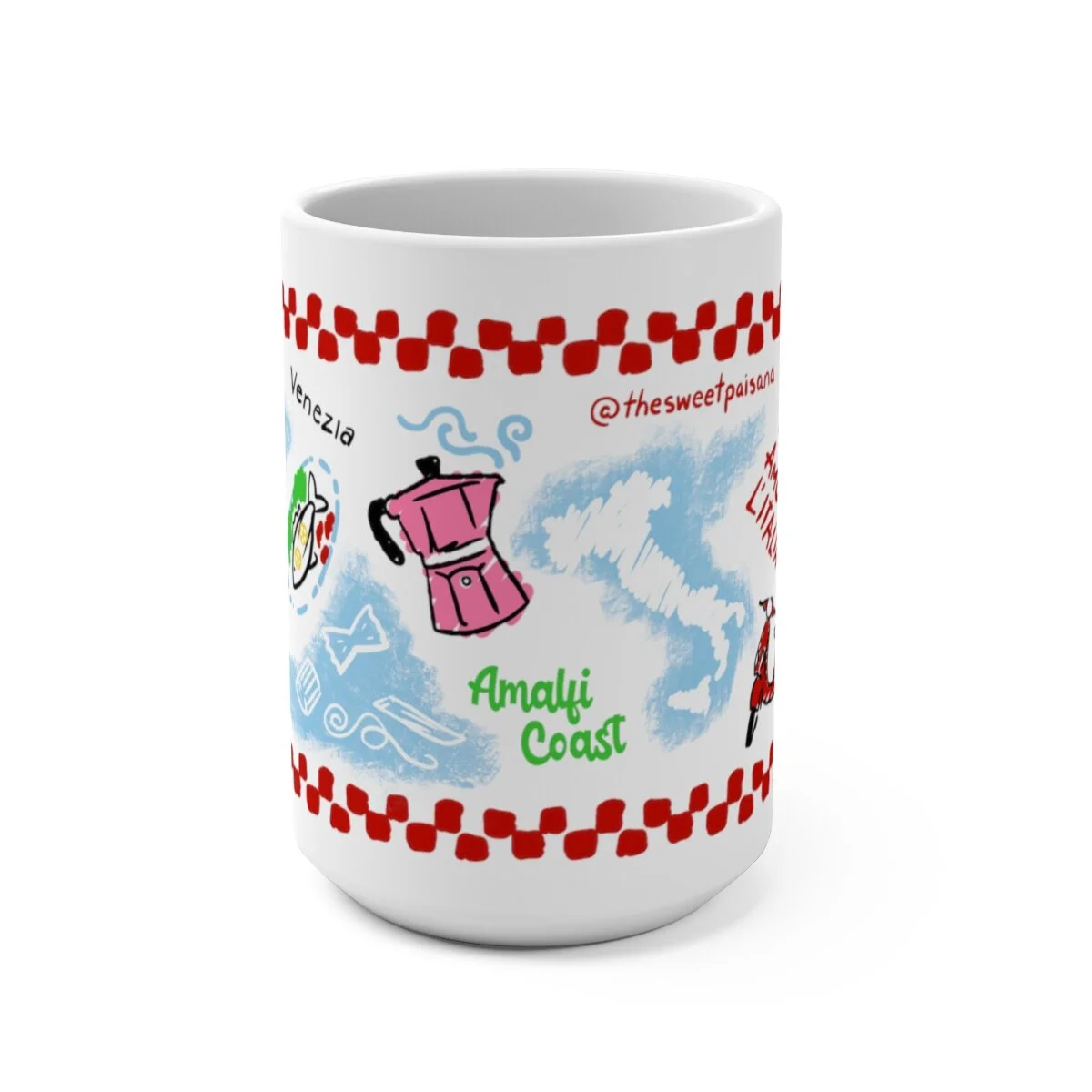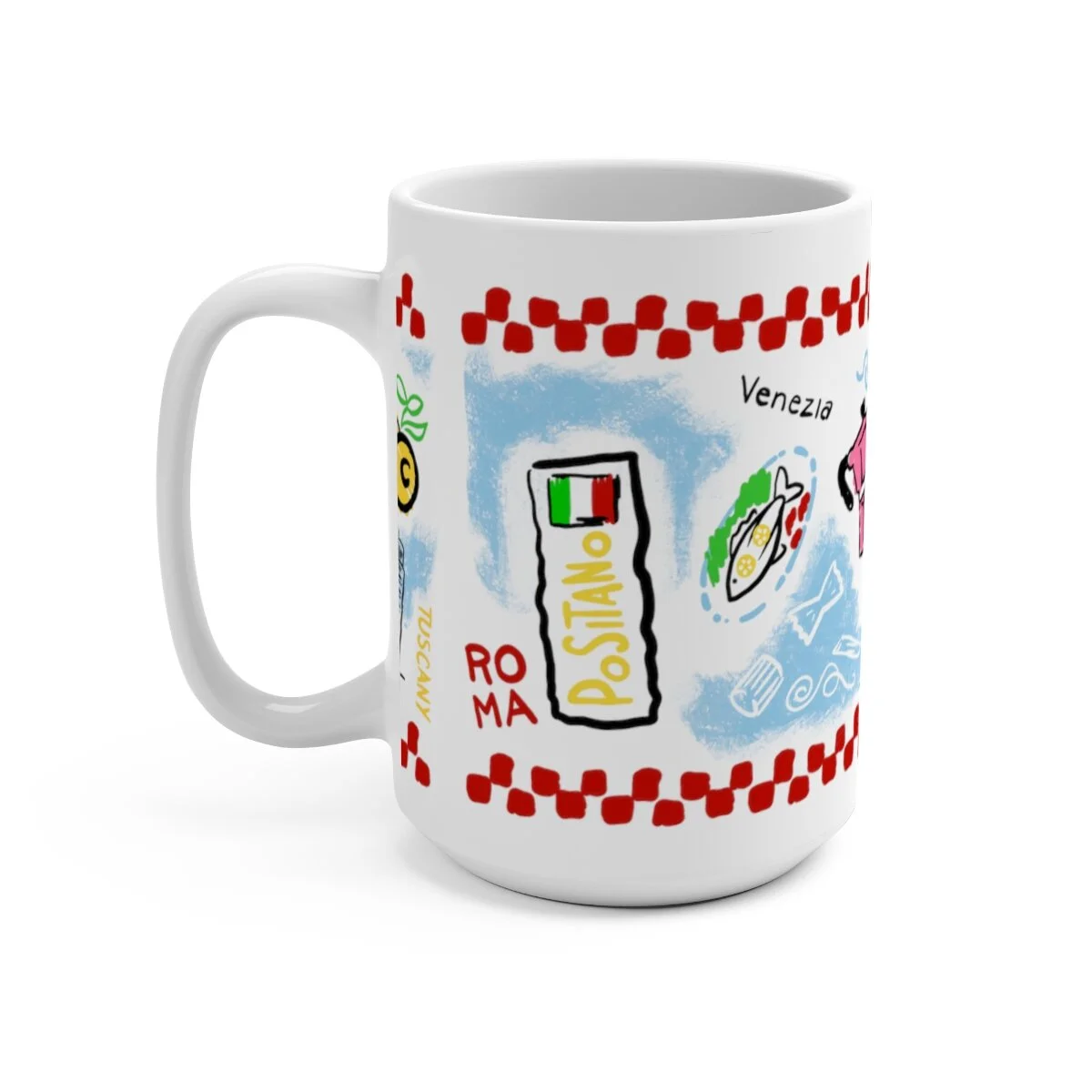 There's never too much coffee! A big size (15oz) white, durable ceramic mug.