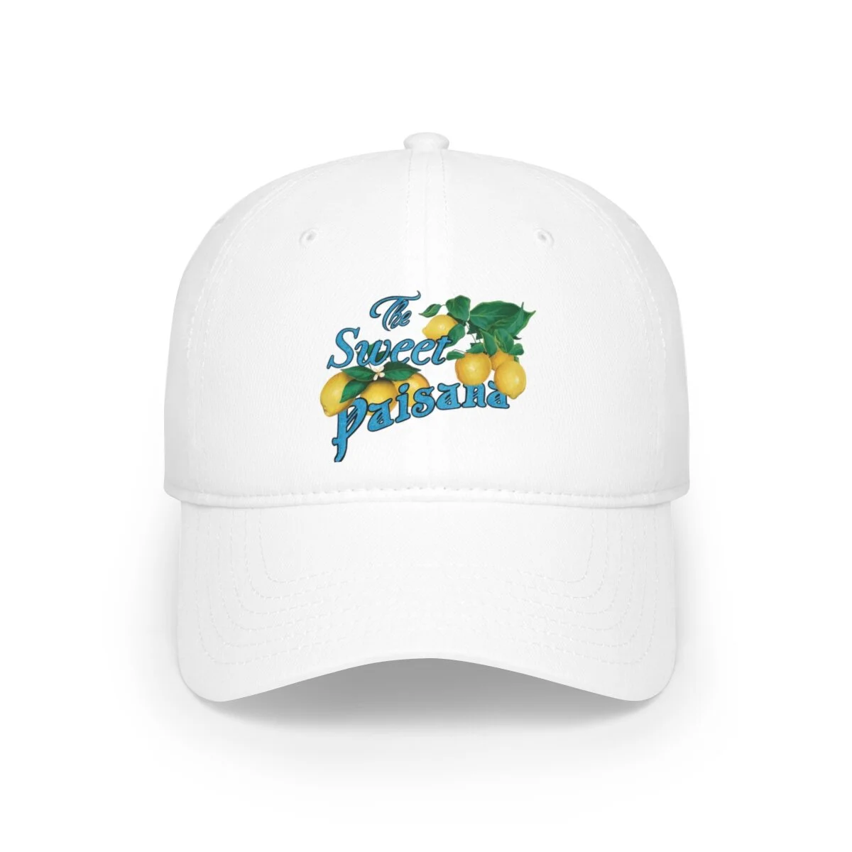 SHOP › The Sweet Paisana Baseball Cap - Blue Image 1 of 5 Image 2 of 5 Image 3 of 5 Image 4 of 5 Image 5 of 5 The Sweet Paisana Baseball Cap - Blue $25.00 .: 100% Cotton Twill.: Structured, Low-Fitting.: Adjustable Velcro® closure Quantity: Add To Cart Added! .: 100% Cotton Twill.: Structured, Low-Fitting.: Adjustable Velcro® closure